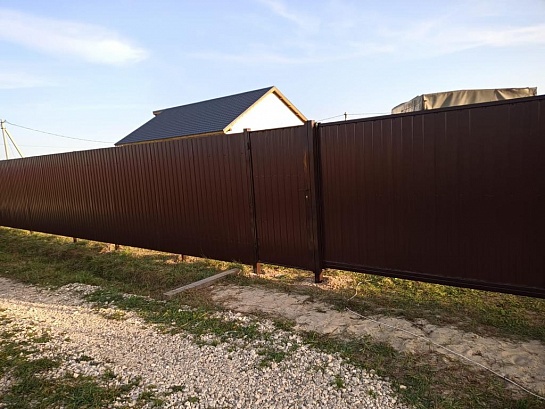 Забор из профнастила с утрамбованным щебнем 180 метров